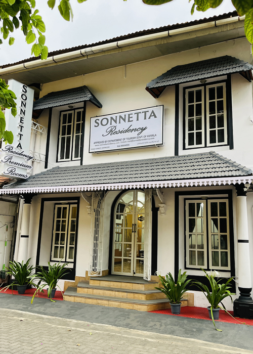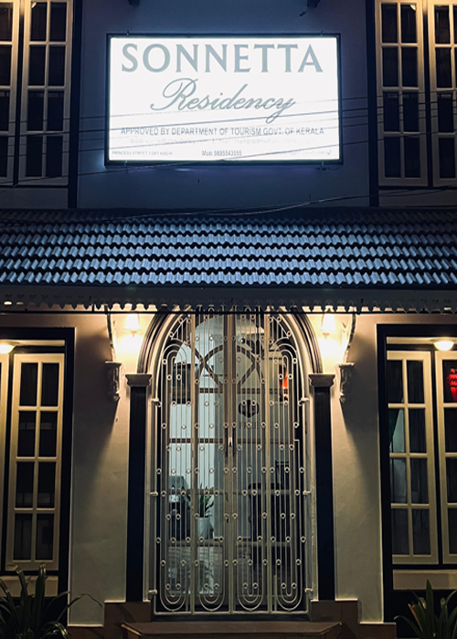 Sonnetta Residency in Fort Kochi is a historic, heritage listed guesthouse centrally located in the vibrant hub of Princess Street. Built in the Portuguese style, Sonnetta combines the beauty of traditional architecture with modern amenities. Situated a stone’s throw from the shores of the Arabian Sea, Fort Kochi on the Malabar Coast has long been the home of the historic spice trade and has witnessed the ebb of the Persians, the Dutch, the Portuguese and the English. This rich blending of cultures has created a unique, beautiful and culturally diverse town; a thriving hub of art and architecture, extraordinary food and peaceful canals and backwaters, all close, convenient and ready for you to explore.